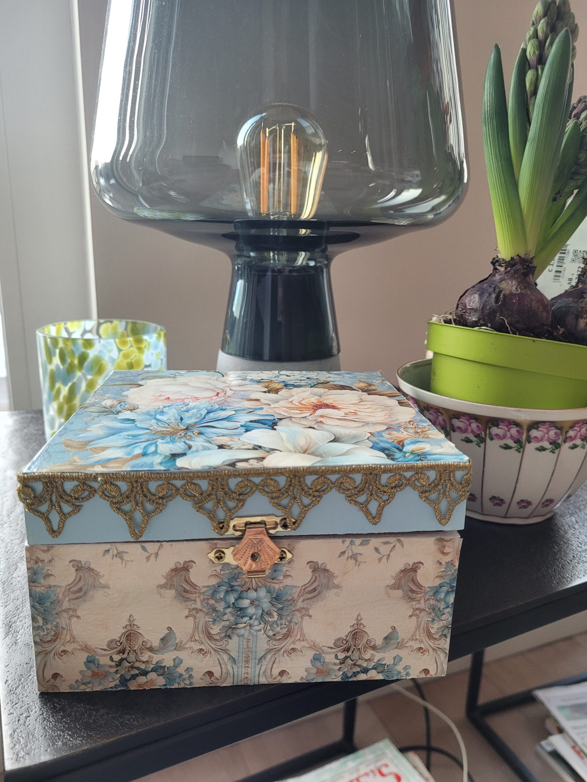 Mit den diesjährigen Schrumpfbanderolen und Blumen gewerkelt