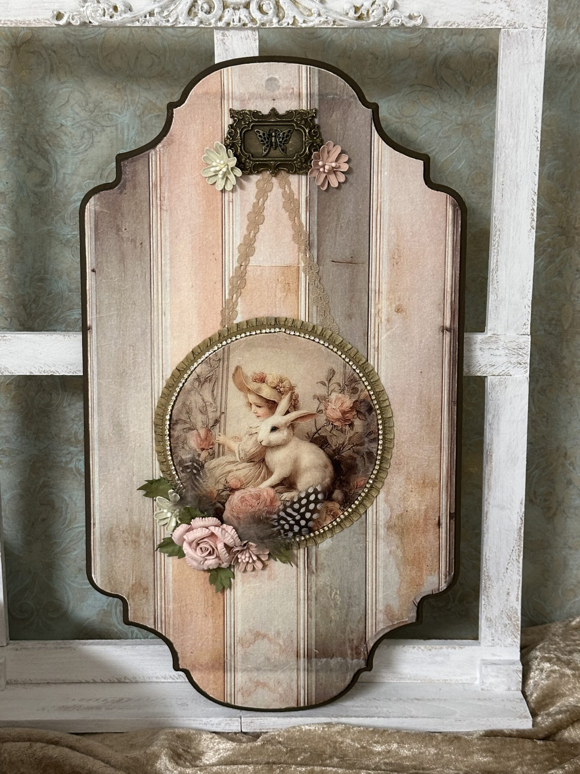 Ich habe hier neben der tollen Mauerschablone auch das Decoupagepapier verwendet und wie eine alte etwas abgerissene Tapete aussehen lassen