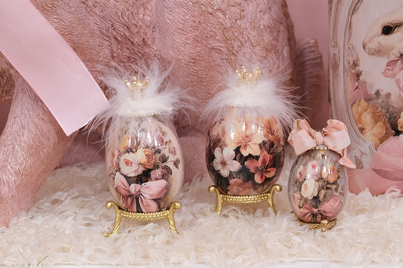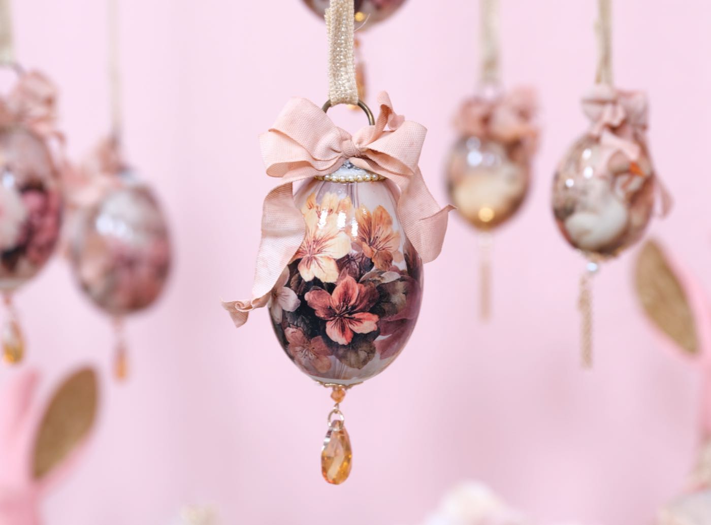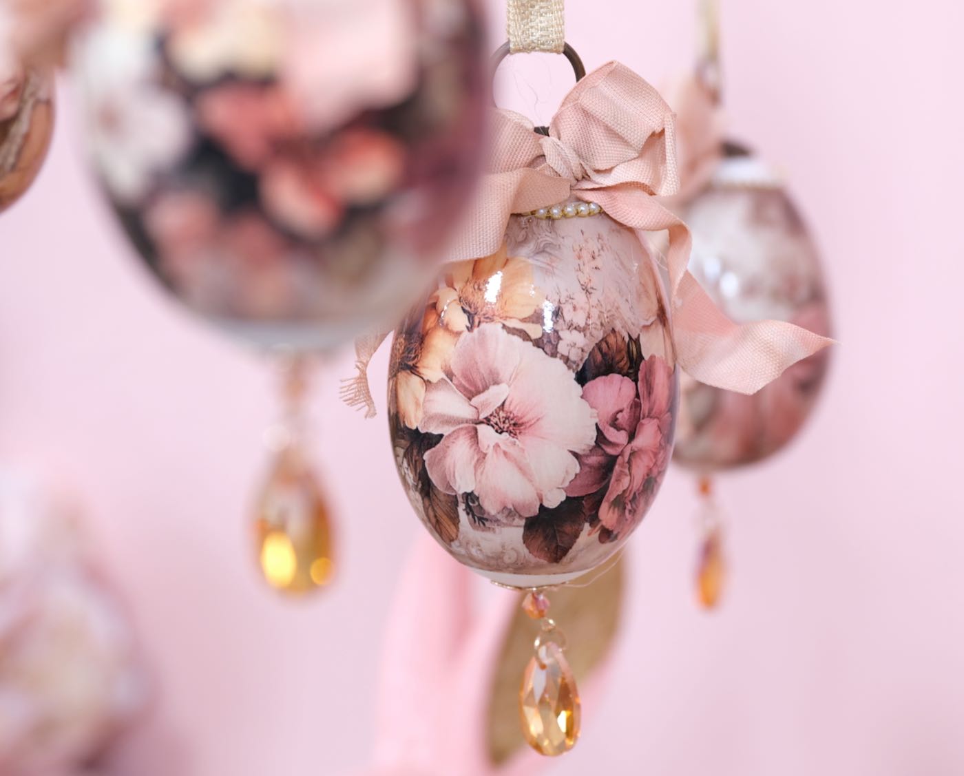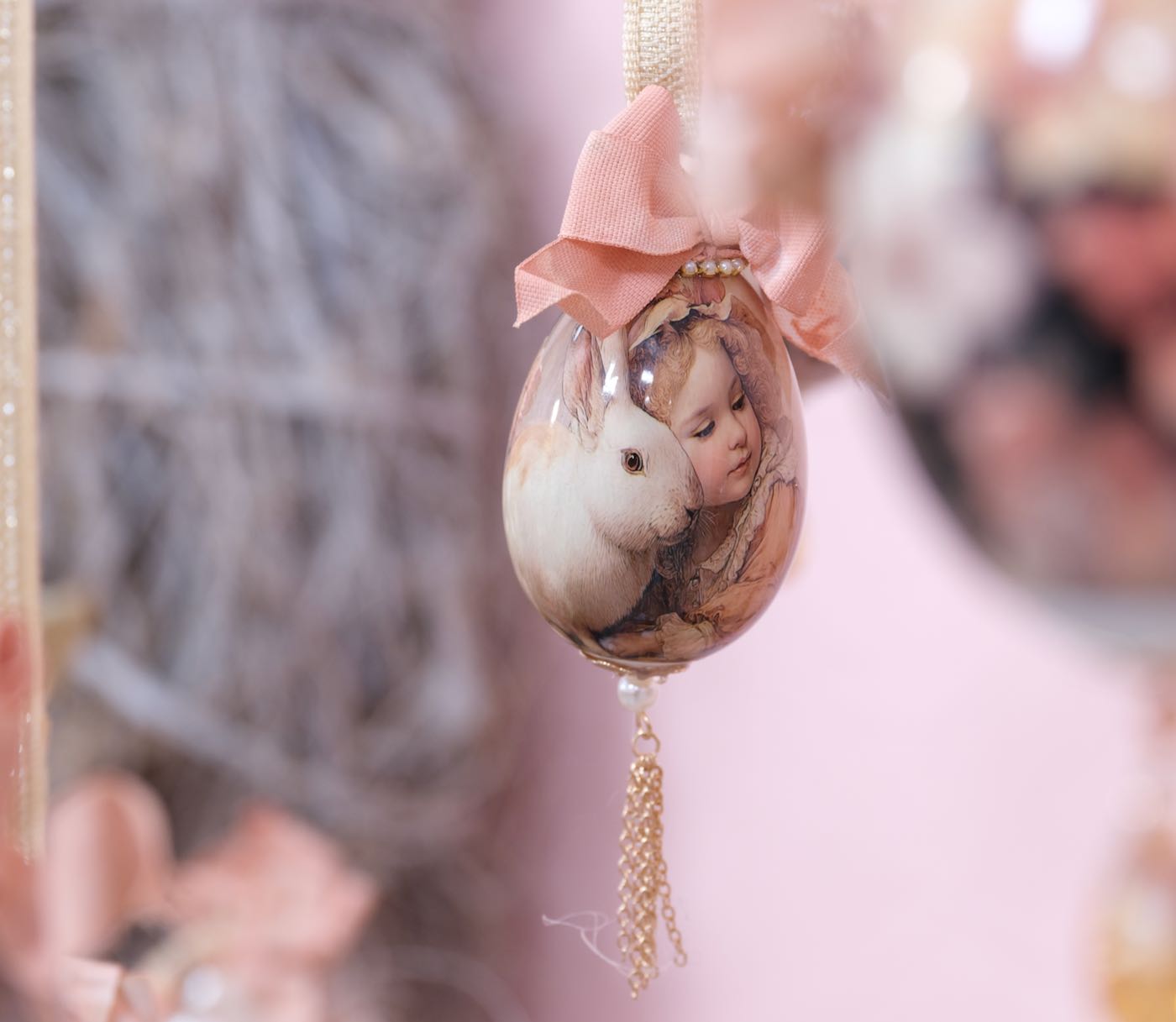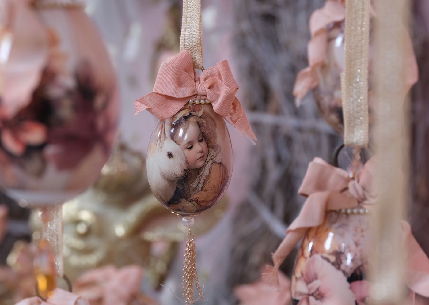 Die Hühner und Gänseeier sind unterschiedlich, teilweise aus echten Eiern und teilweise aus Styropor- bzw Plastik Eier hergestellt. Die großen Aufhänger für Gänseeier und die kleinen Aufhänger für die Hühnereier.