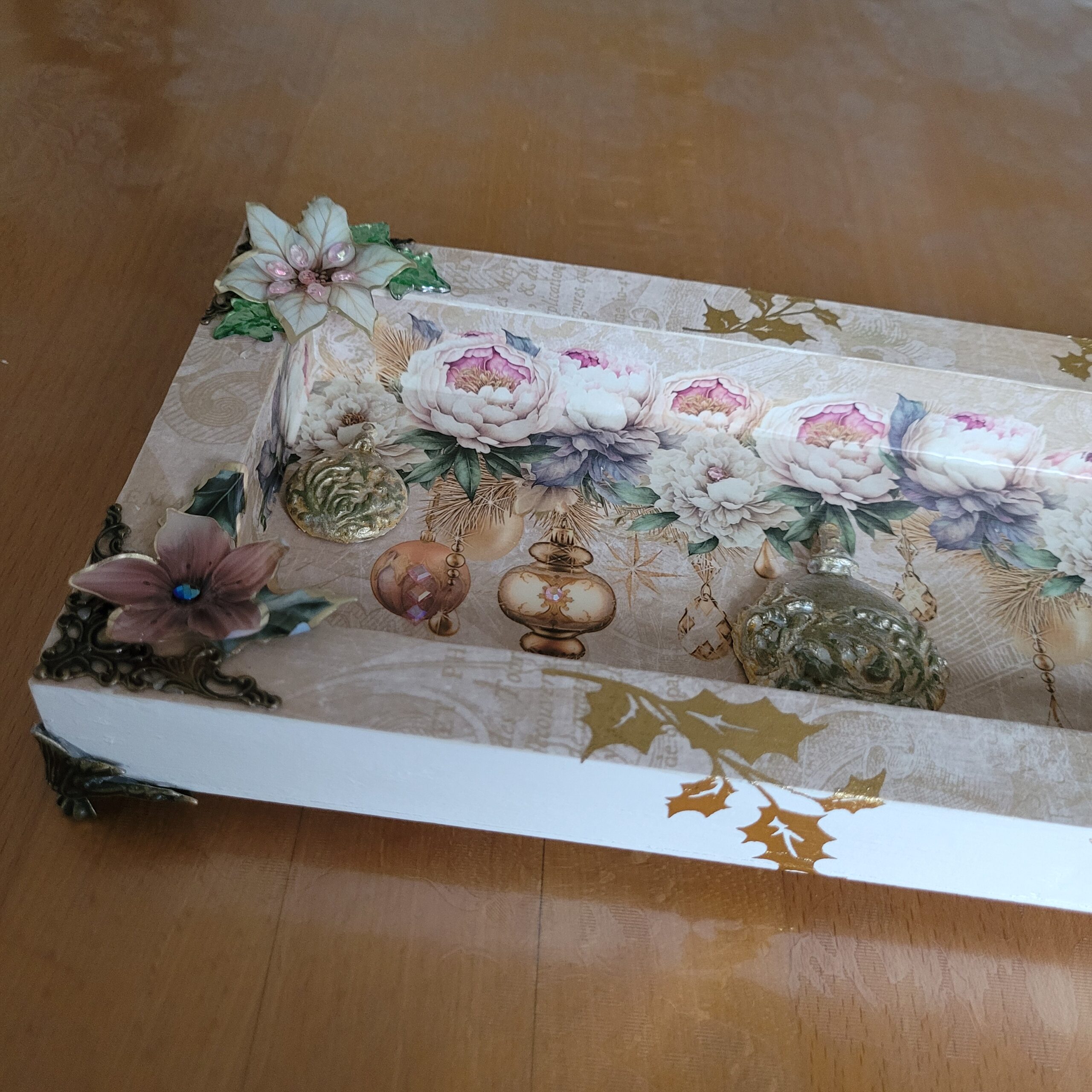 Acrylhalbkugel auf MDF Schild, Reispapier, Transfermotiven und Blumen